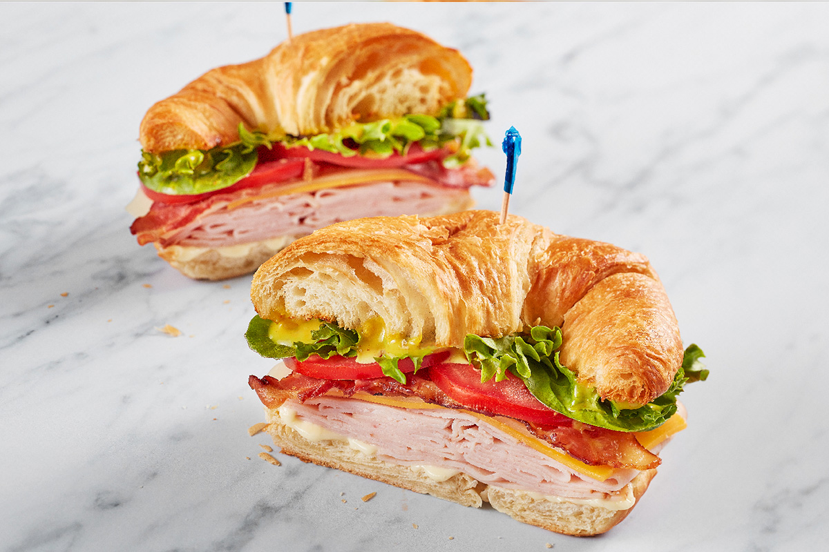 Roasted turkey, bacon, sharp cheddar, Swiss, spring mix, tomato, mayo and McAlister's Honey Mustard™ on croissant.